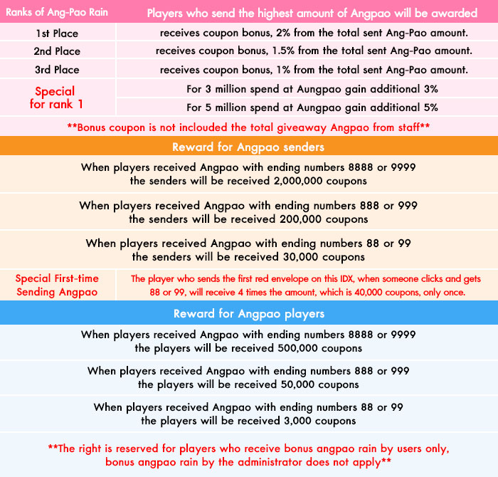 - When players received Angpao with ending numbers 8888 or 9999