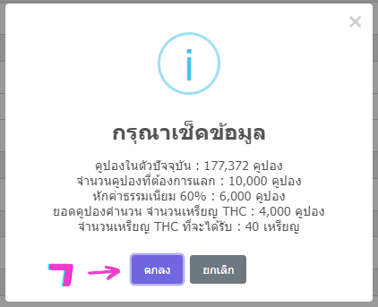 3. ยอดคูปองคำนวน จำนวนเหรียญ THC