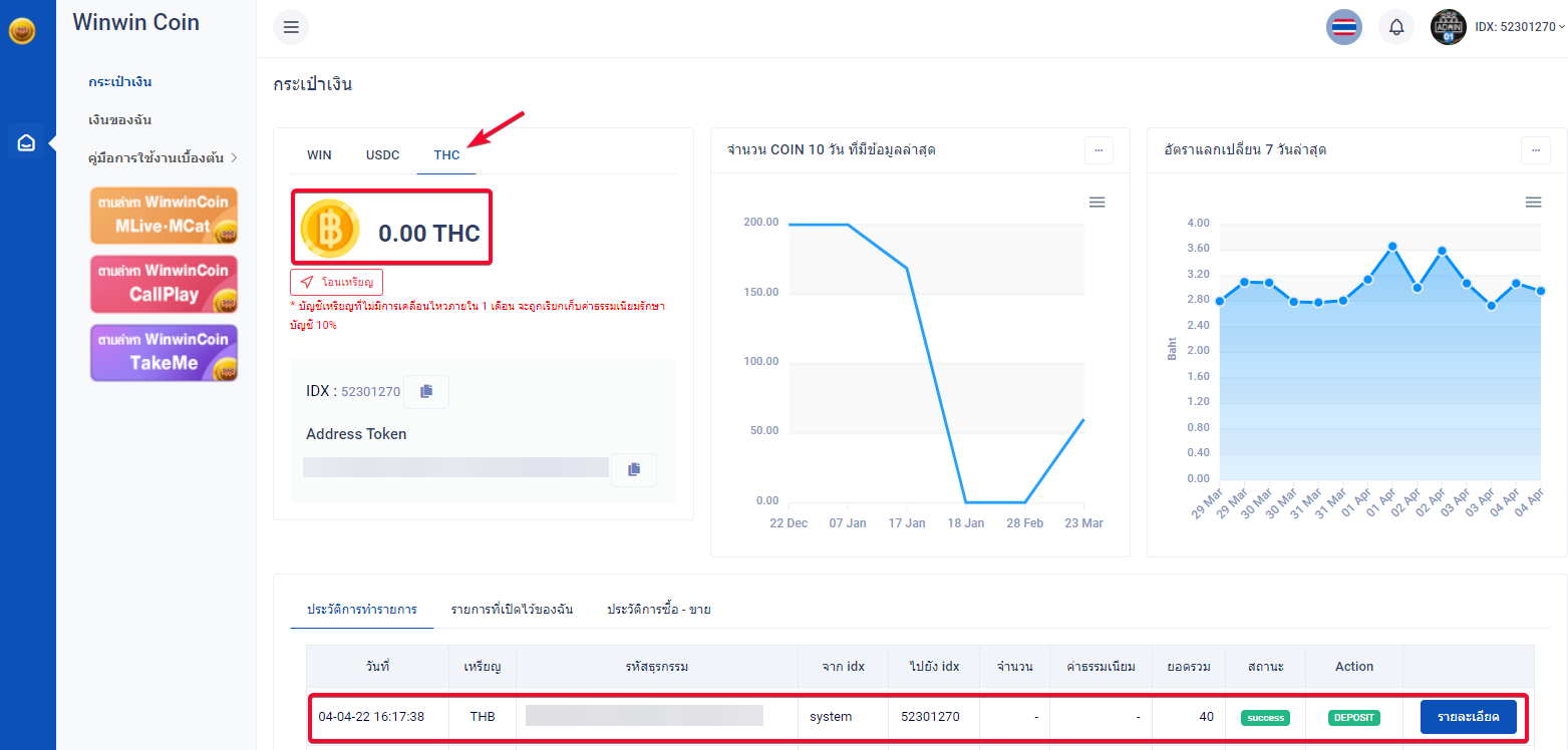 เช็คข้อมูลเหรียญ THC ได้ที่ Winwin Coin